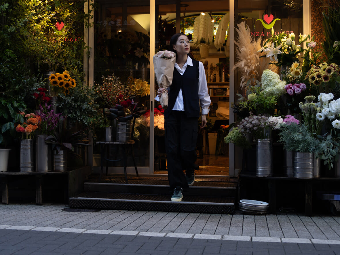 Hikari's project was a first collaboration with the brand and the concept was to follow her journey on a weekend day out. We shoot Hikari san in 5 different locations around Hibiya and Ginza, doing activities that she would typically enjoy. As she got coffee, as she read in the park, as she picked out some flowers. We really wanted to recreate her aesthetic of a New York vibe within Tokyo.